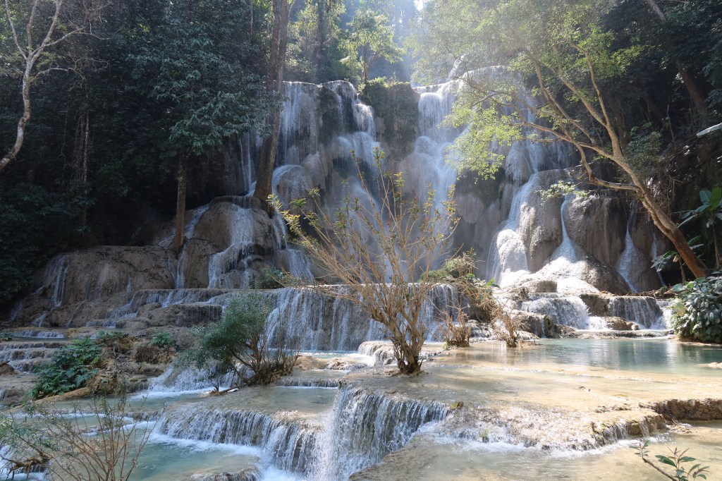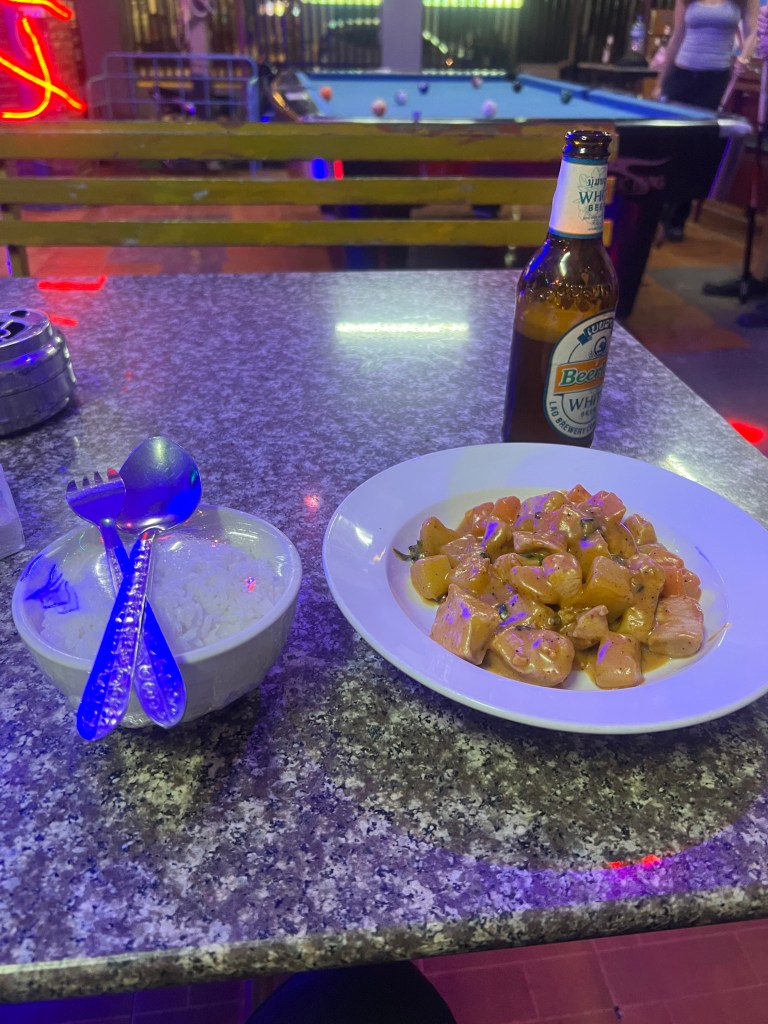Walked through the morning market, very interesting to see how they sell so many different foods. I tried out a couple little things but I didn’t get too adventurous. Then I headed to the Kuang Si waterfall that was beautiful. There have been butterflies everywhere and I think of Chanel every time I see one. Overall it was a nice day, I tried some street food and then made some friends from England and went bowling again.