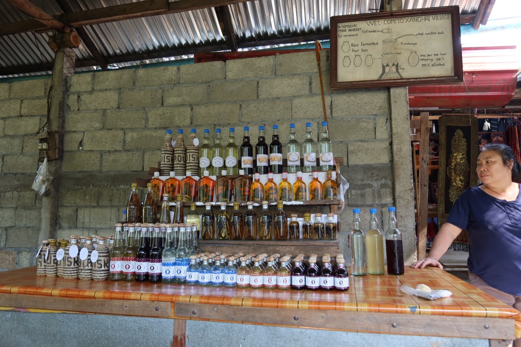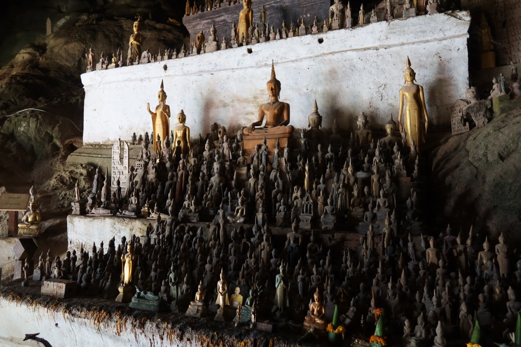 Took a slow boat river tour to the Pak Ou Caves. We stopped at a local village to try their liquor and look around at their creations.The caves were cool, the walk up all the stairs was not. We also stopped and had a nice lunch besides the river.