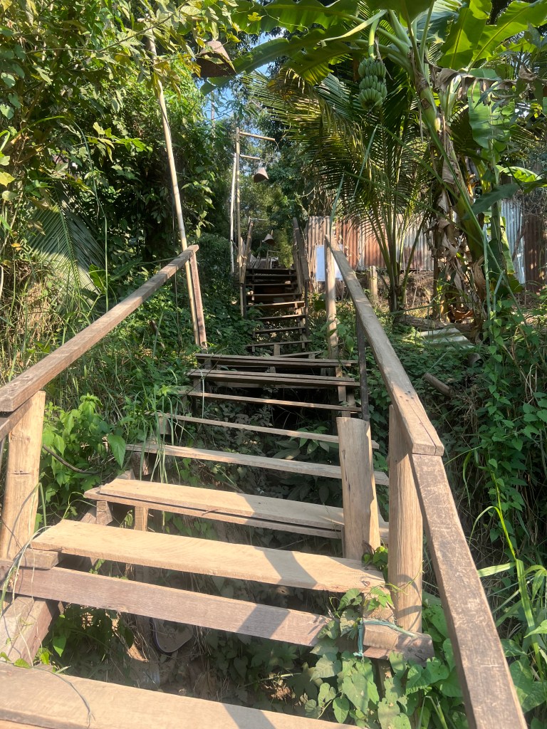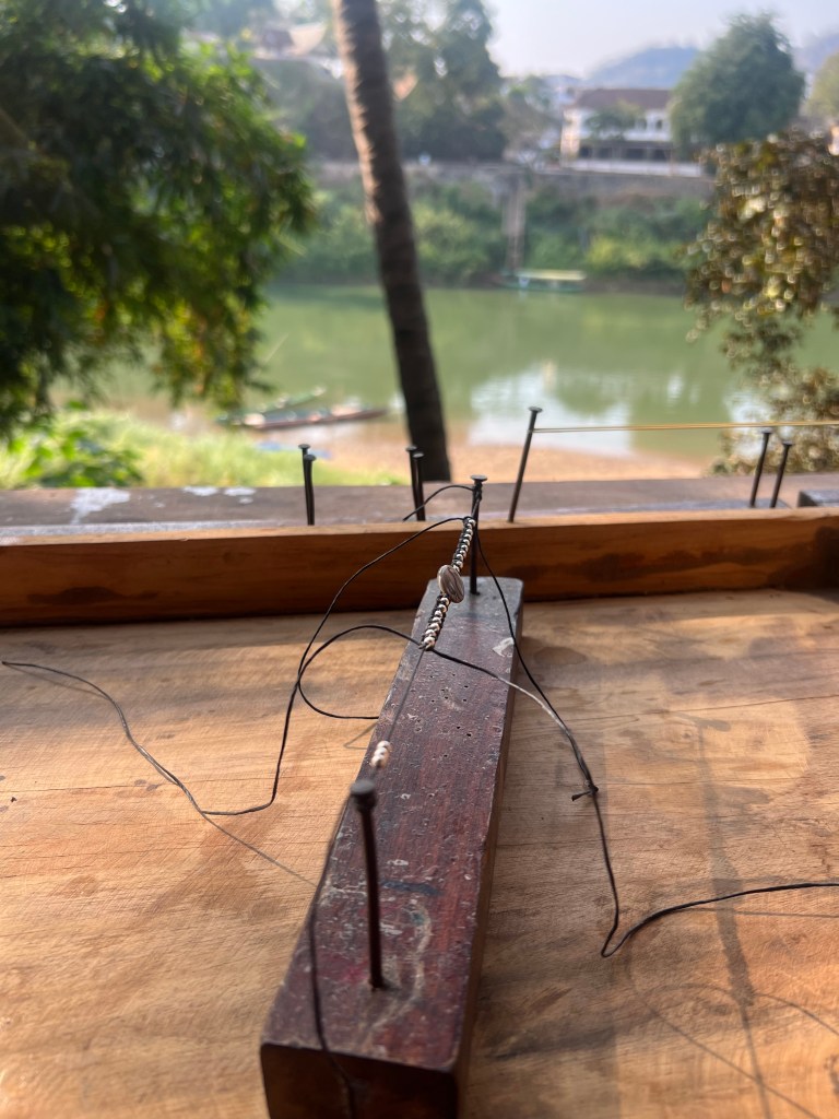 I got to sit along the river and make a bracelet. Then I took the little ferry across instead of heading all the way to the bridge . Definitely some sketchy boards down to the water from the road though. I got a tuktuk to the train station and then I got on my train to Vang Vieng