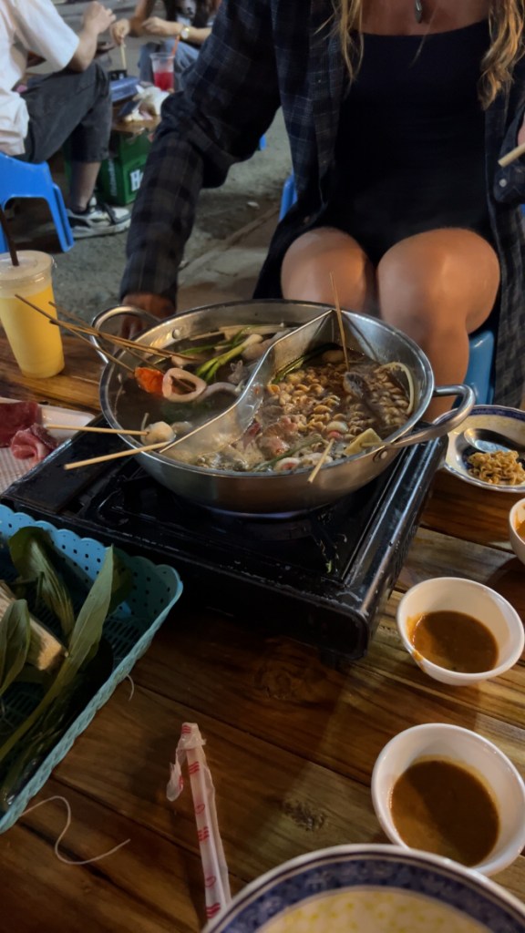 My Canadian girls I met in Cambodia came up to Laos and we got to hang again! We went kayaking with a couple of my Dutch friends on the river and don’t even tip over! Although we had a couple close calls… apparently I should tell them there’s a rock in front of us before we’re about to hit it haha.We checked out the night market and tried some hot pot!