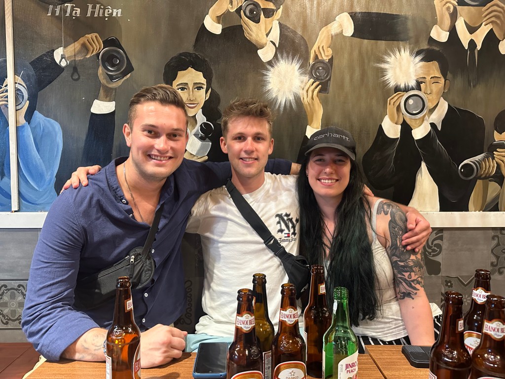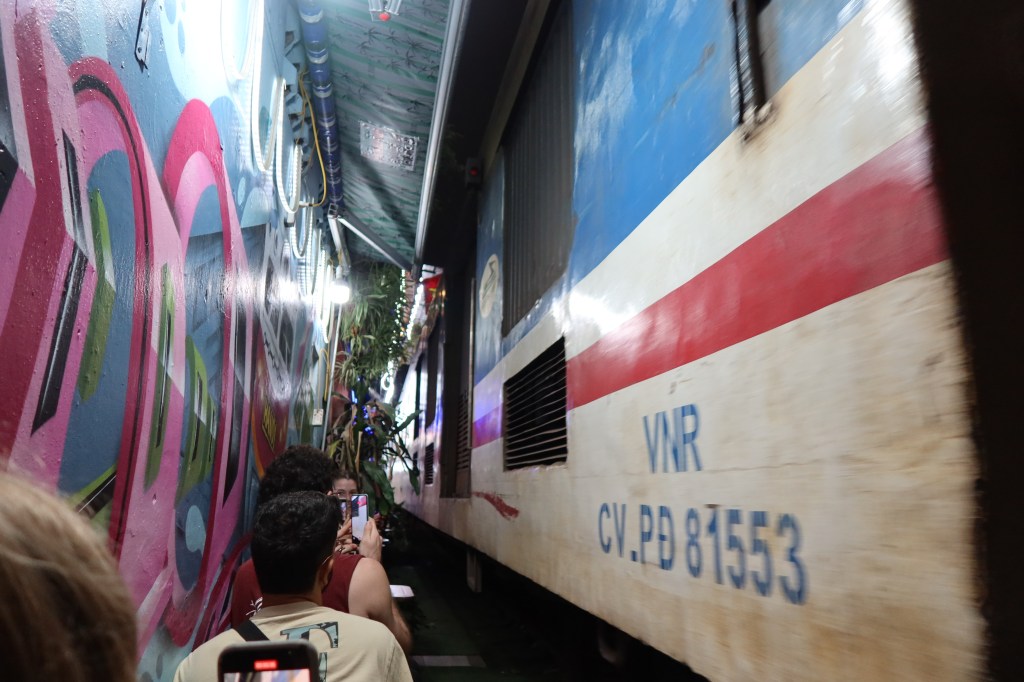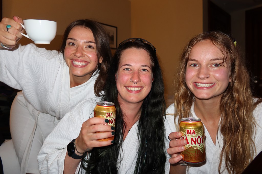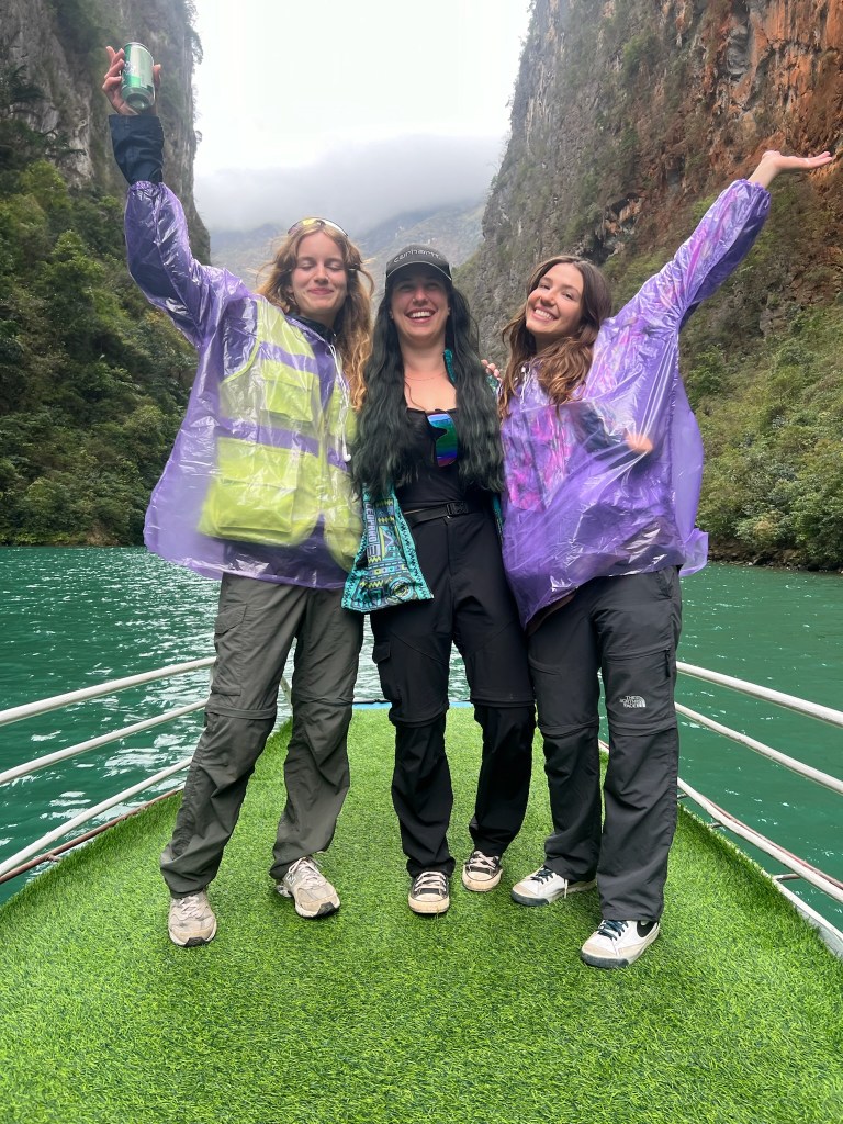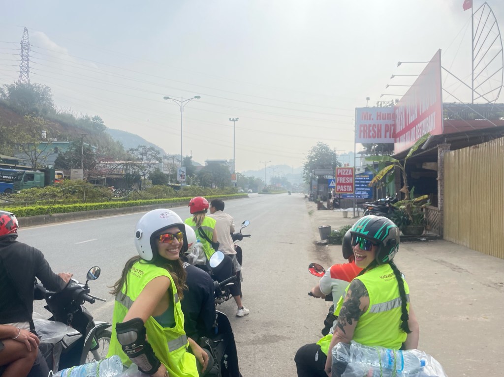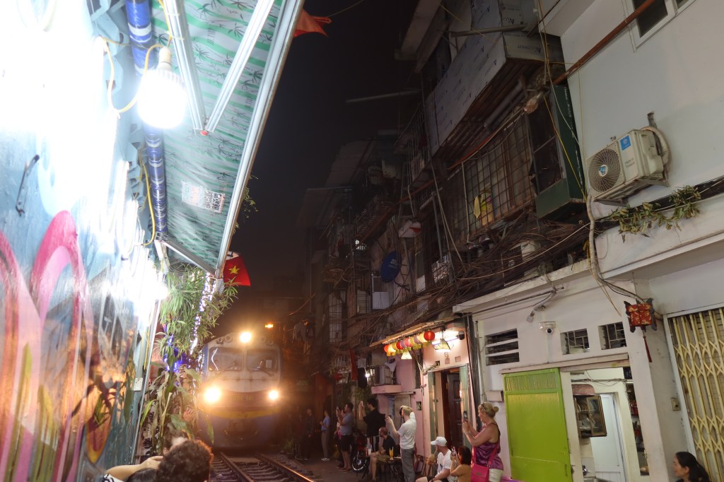 Came back to Hanoi for a couple more days, first night back and I saw some of my friends I met in Laos before they headed out to do the Ha Giang Loop! The next day my friends from Canada came to Hanoi and we were reunited. Love these girls. We had some fun exploring the city, trying food and goofing off. We bought some funny jackets and sunglasses to do the Ha Giang Loop together. Before we got our night bus we went and checked out the train street, definitely a little close. Mya and I decided to touch the train as it was going by lol.